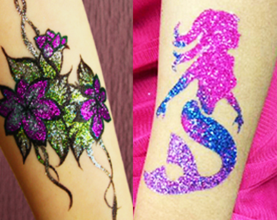 Face and Body Painting, FX Makeup, UV/Neon Painting, Glitter Tattoos, Temporary Tattoos, Colorini Tattoos, Freehand Glitter Tattoos and Glitter Makeup.