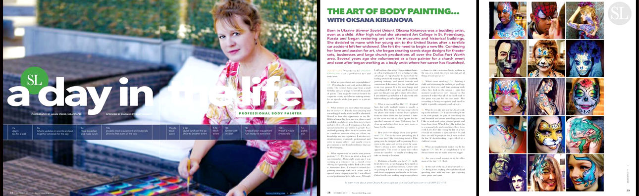 Society Life Magazine, where she shares her story about Face and Body Painting career.